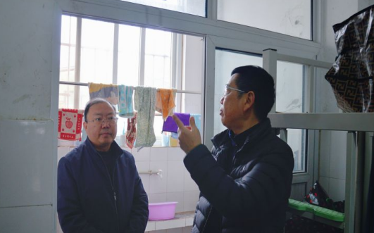 在參觀學生宿舍的過程中,安顯奎詳細了解了學生的住宿條件和生活設施,他要求學校做好后勤保障工作,讓學生住得舒心、睡得安心、吃得放心、學得用心。