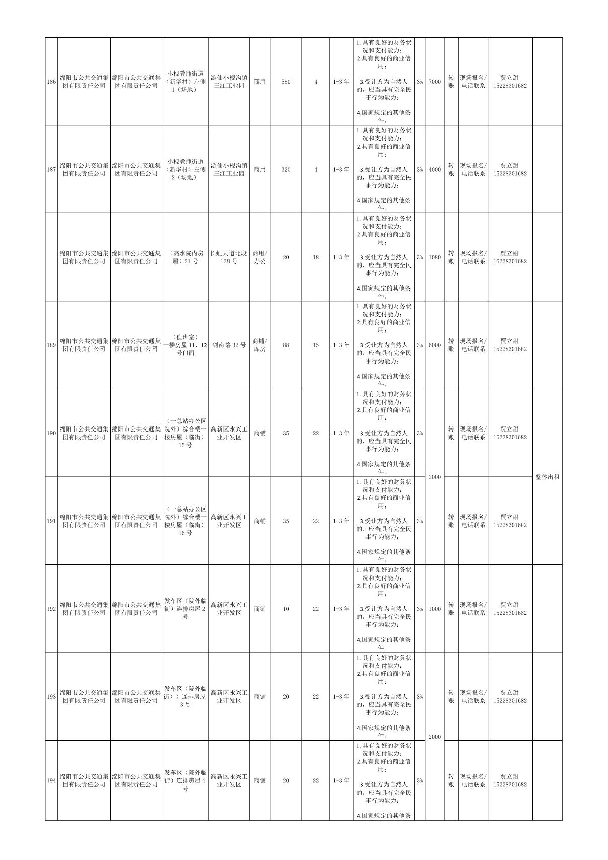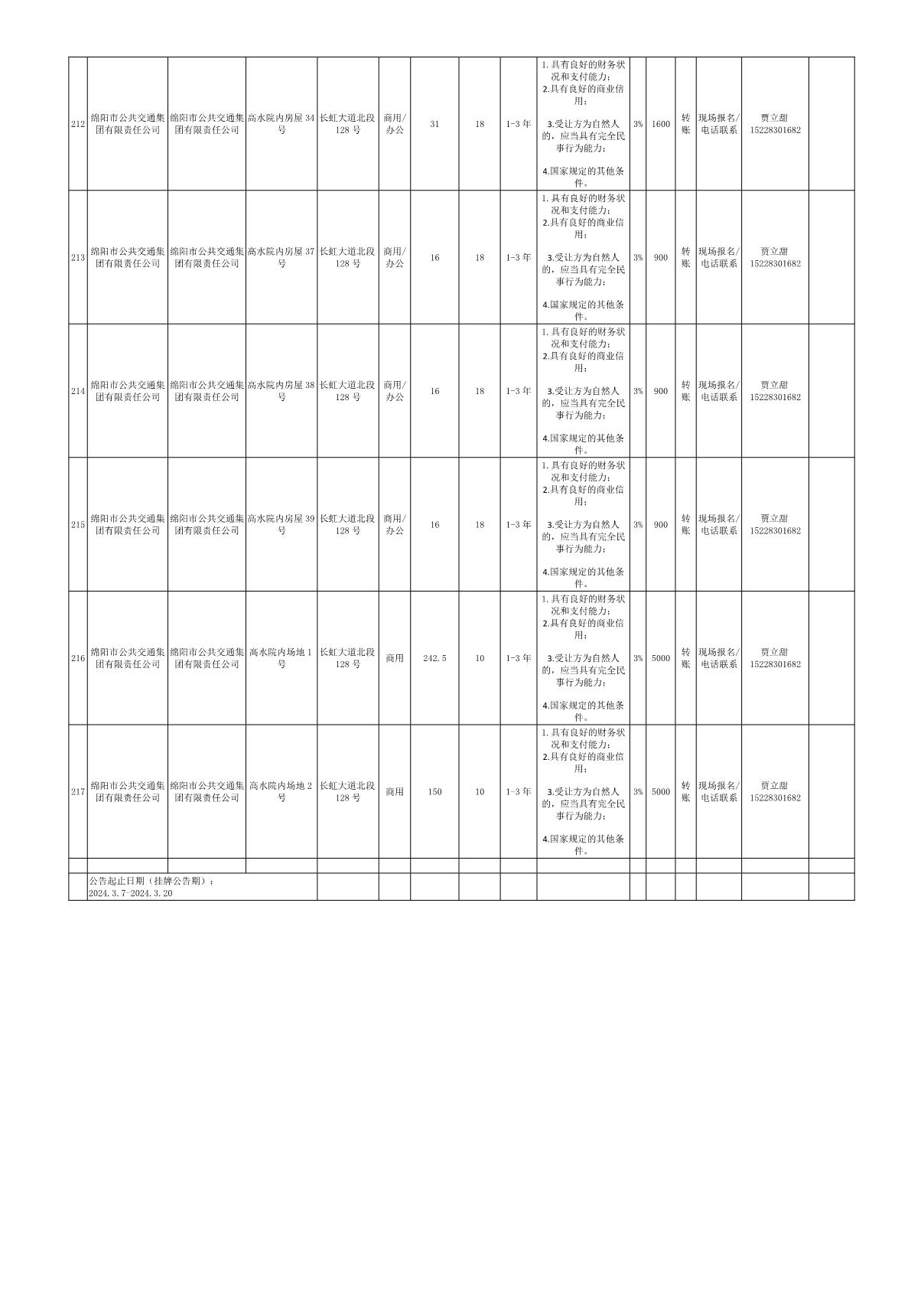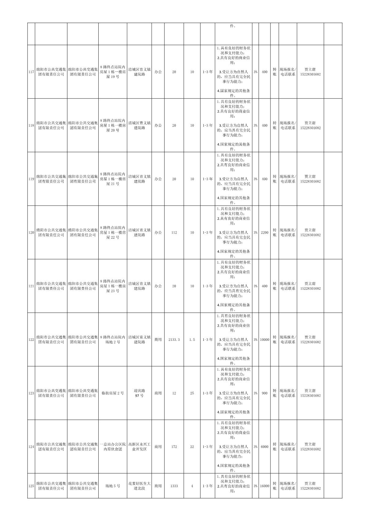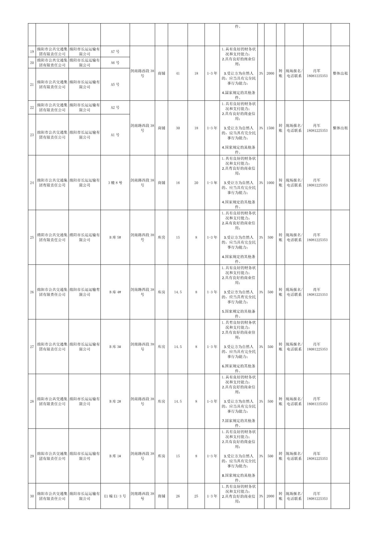 綿陽市公共交通集團有限責任公司資產出租公告(2-3月)