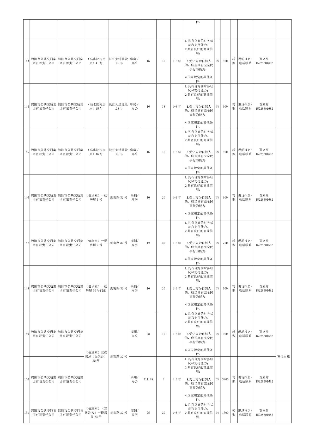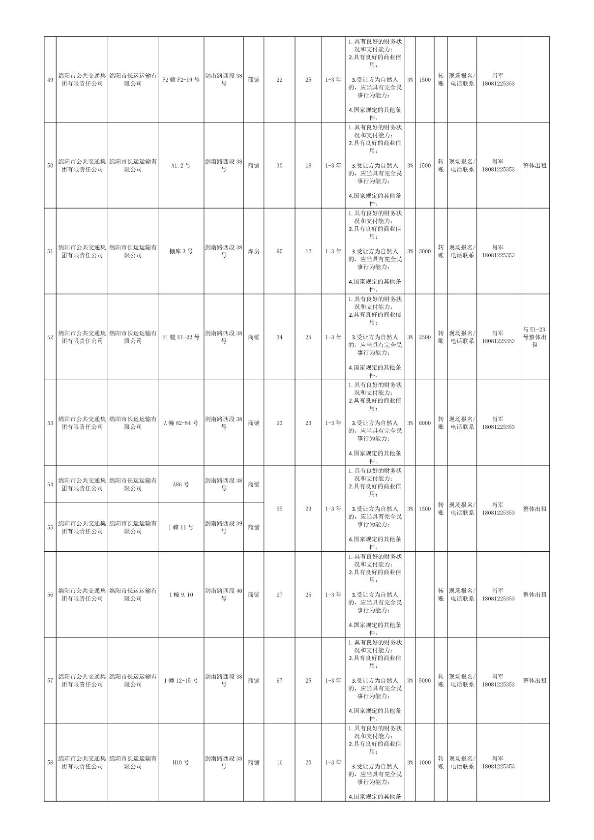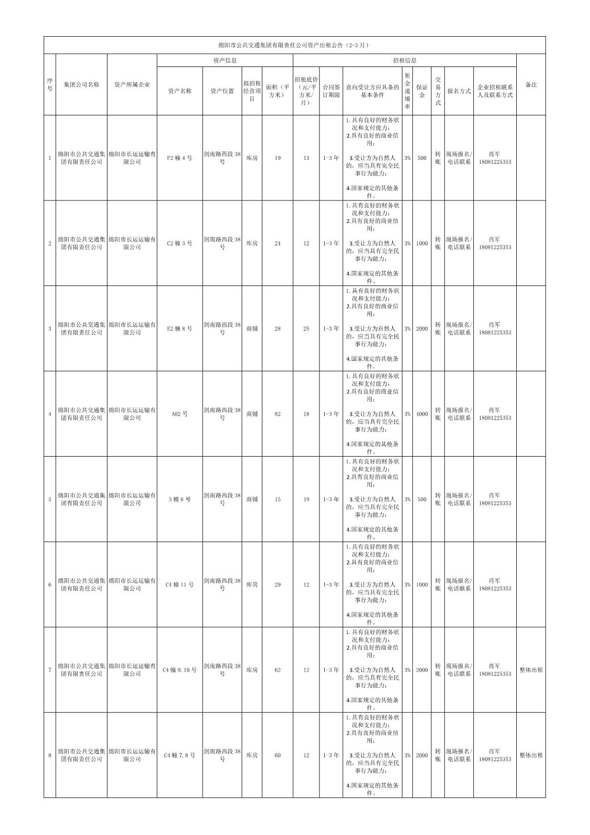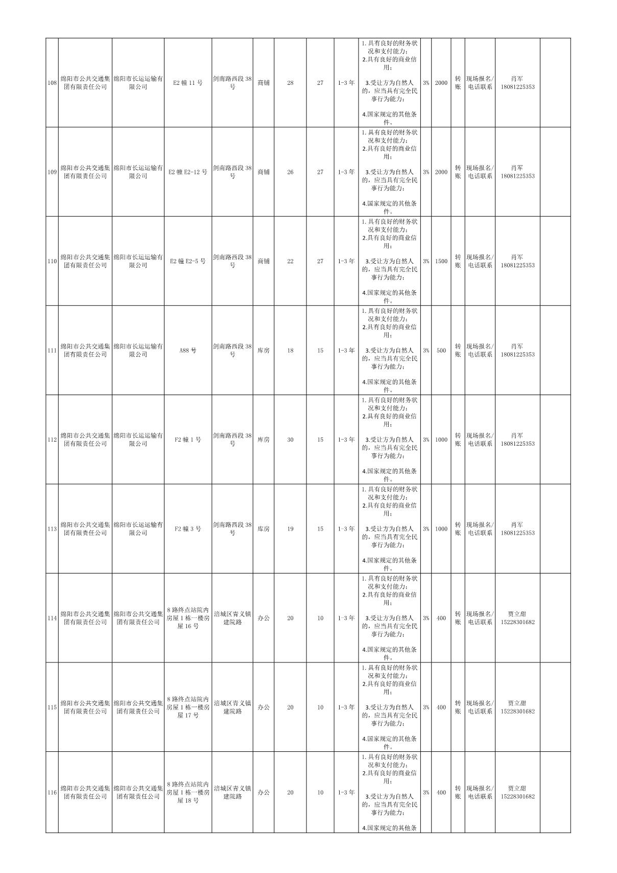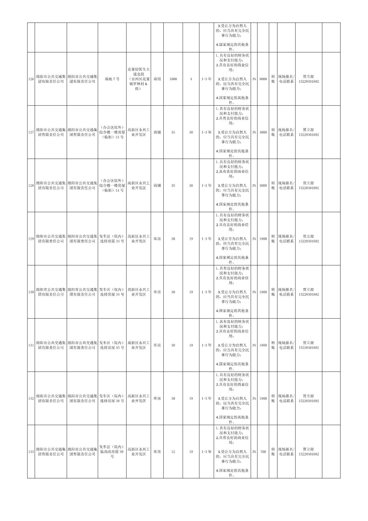 綿陽市公共交通集團有限責任公司資產出租公告(2-3月)