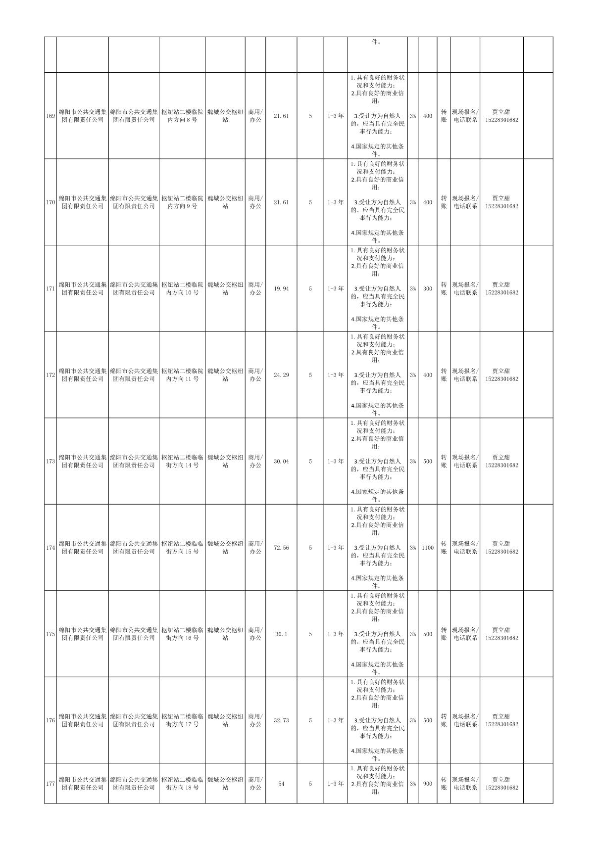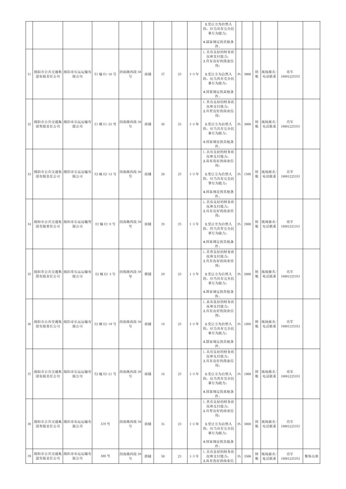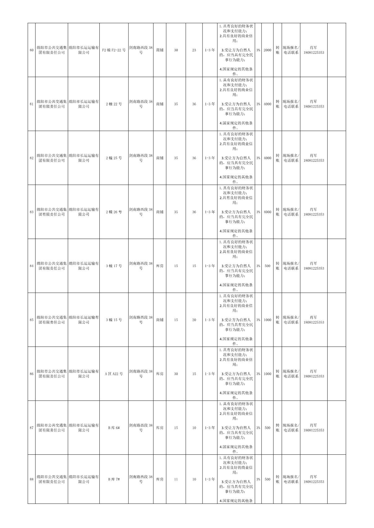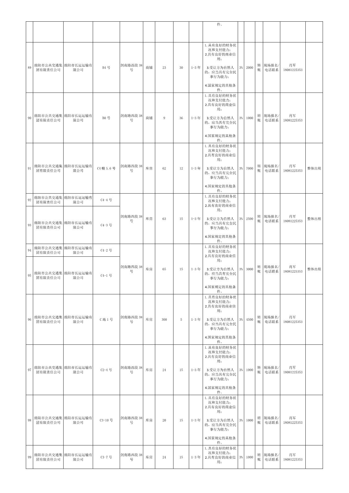 綿陽市公共交通集團有限責任公司資產出租公告(2-3月)