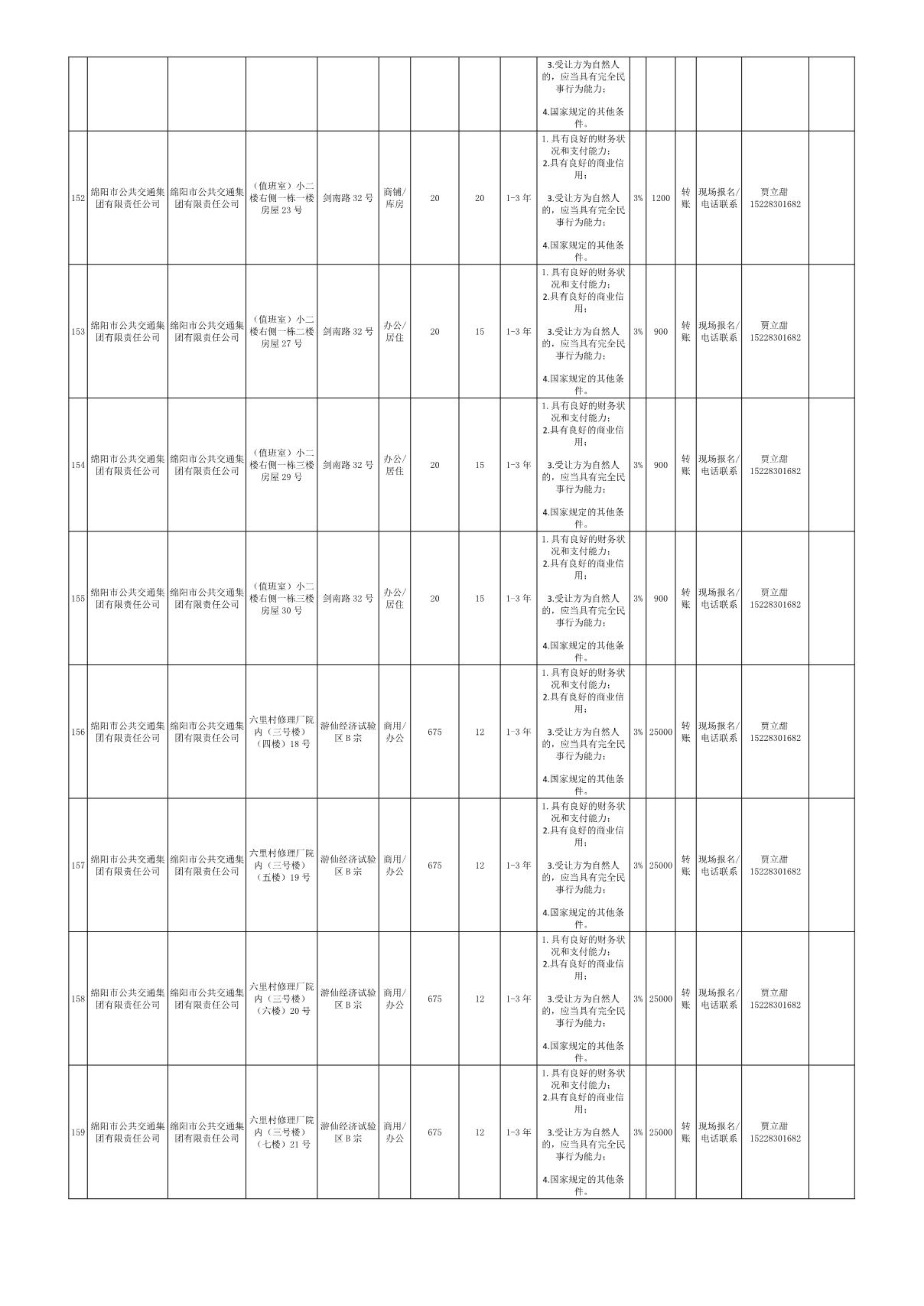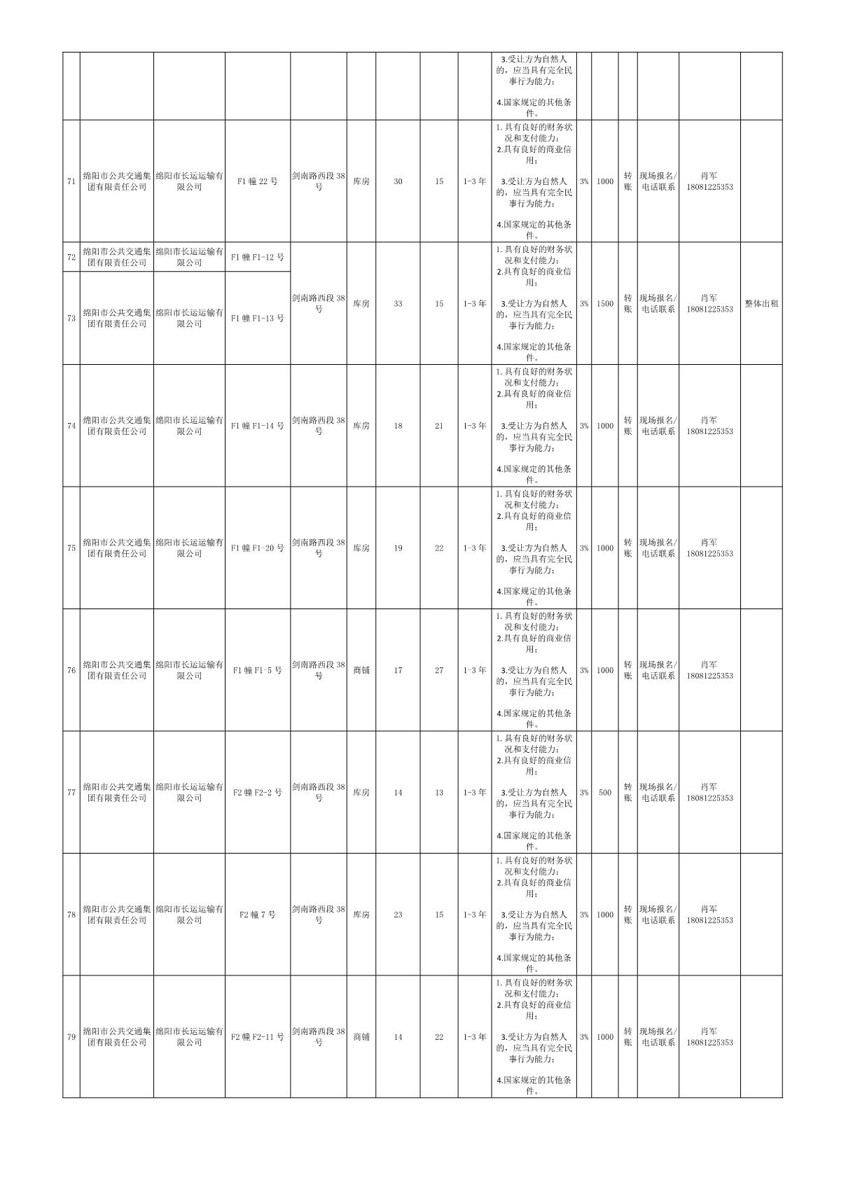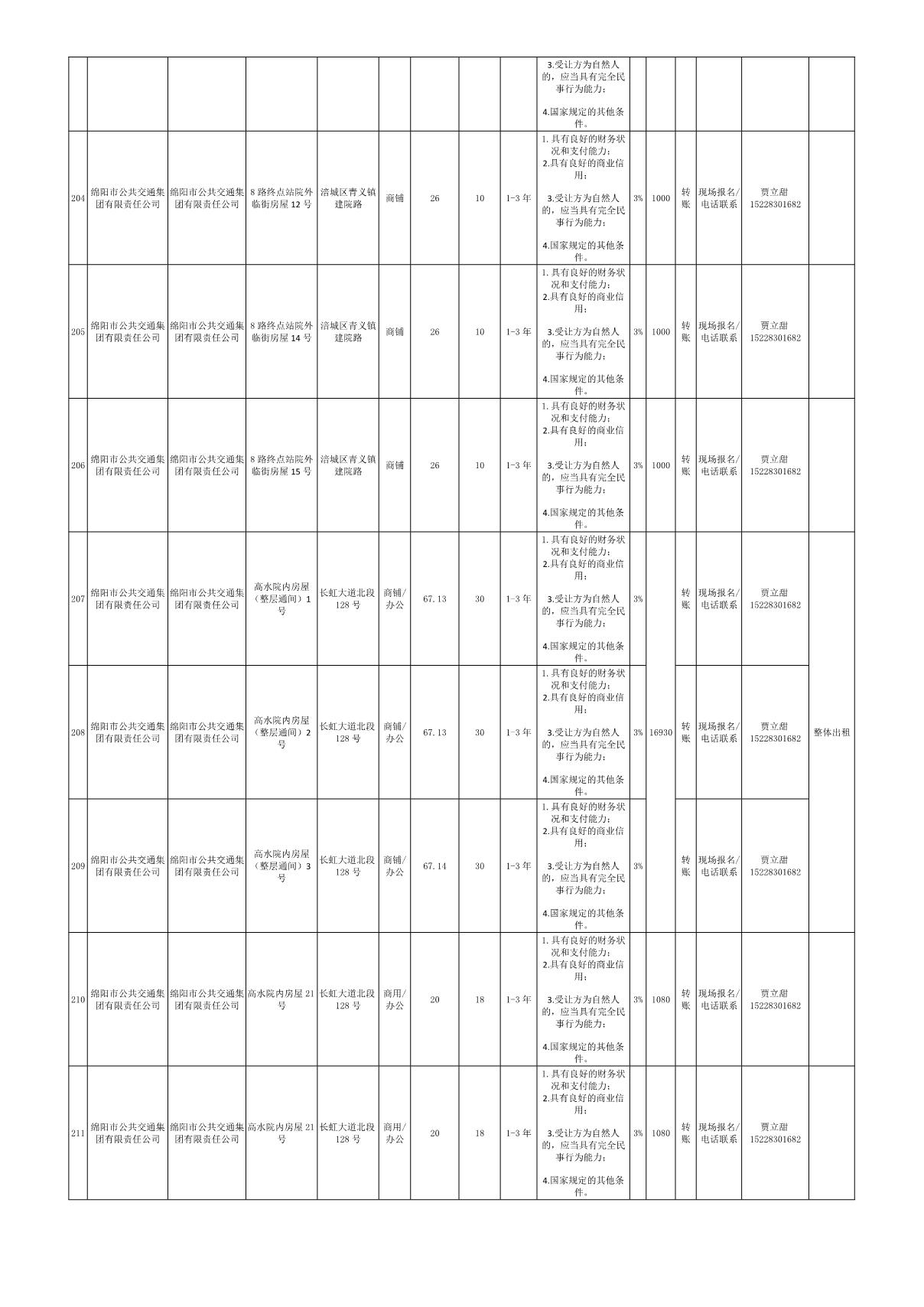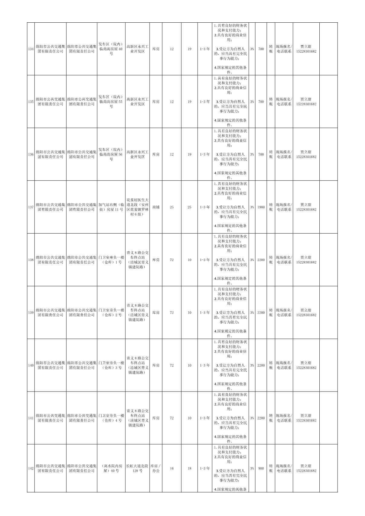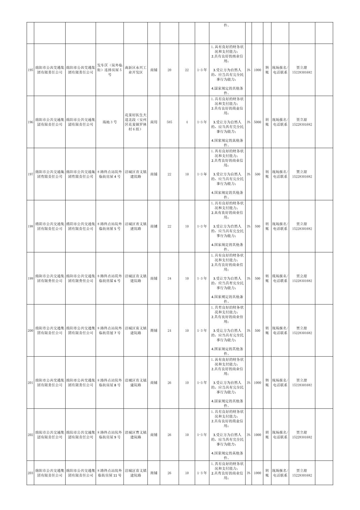 綿陽市公共交通集團有限責任公司資產出租公告(2-3月)