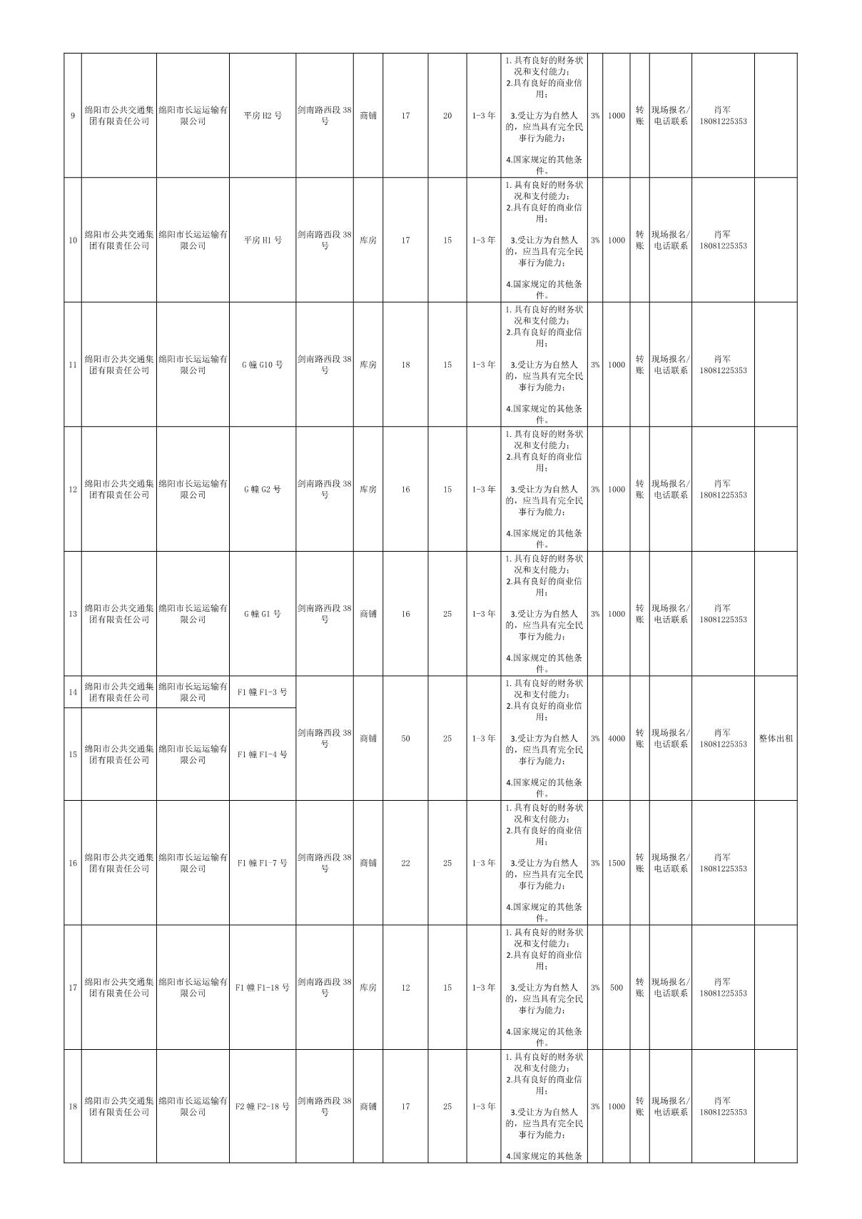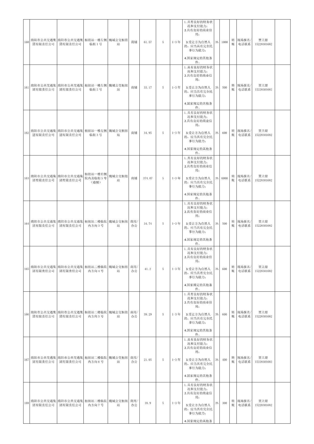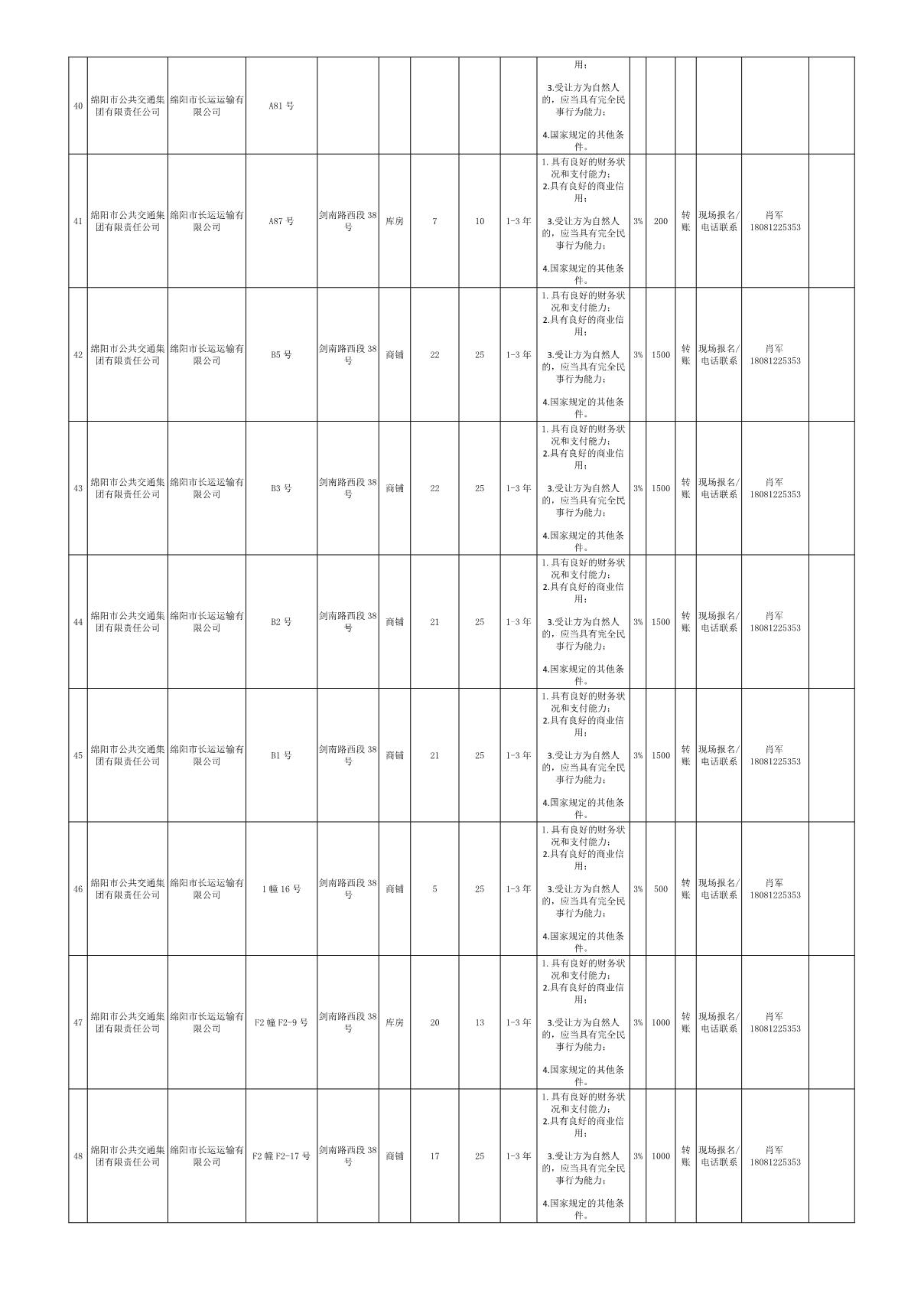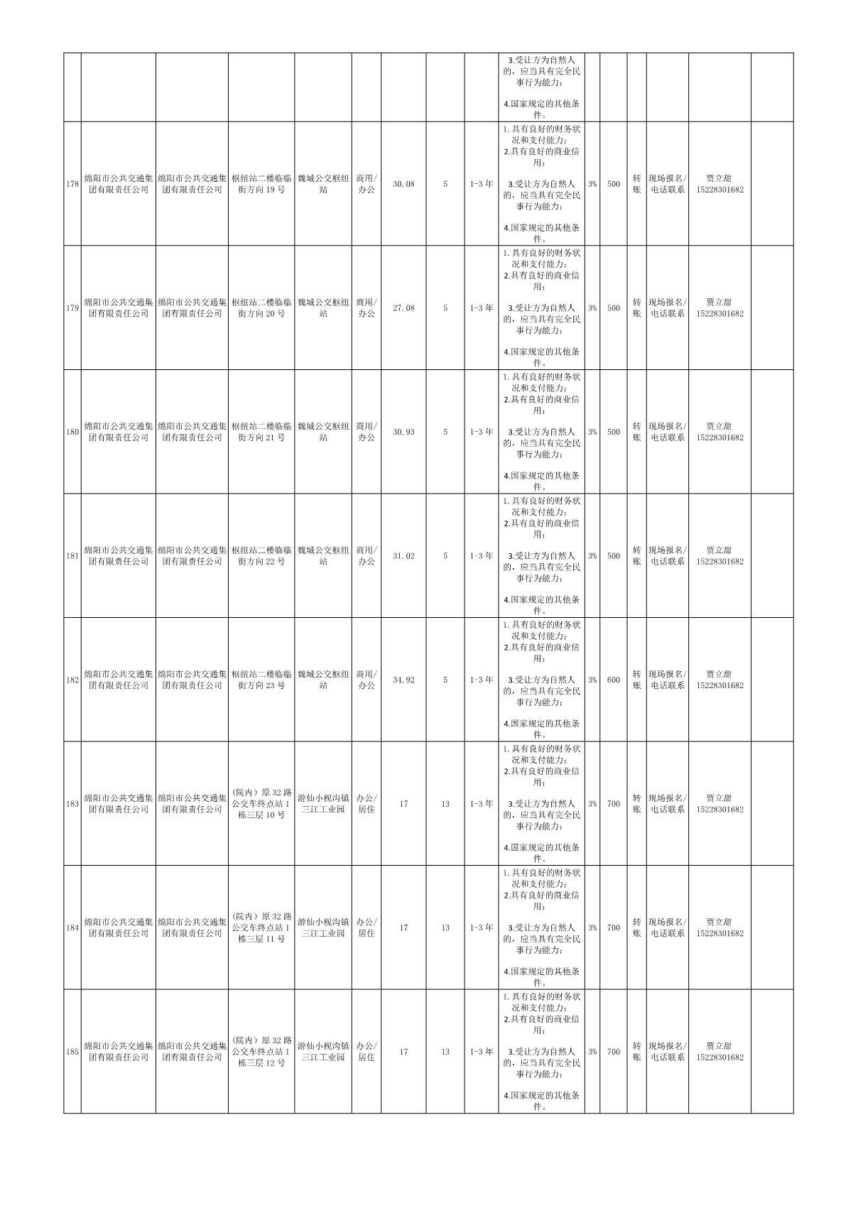 綿陽市公共交通集團有限責任公司資產出租公告(2-3月)