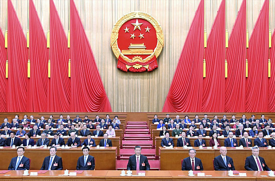3月11日,第十四屆全國人民代表大會第二次會議在北京人民大會堂閉幕。黨和國家領導人習近平、李強、王滬寧、蔡奇、丁薛祥、李希、韓正等在主席臺就座。 (新華社記者 謝環馳 攝)