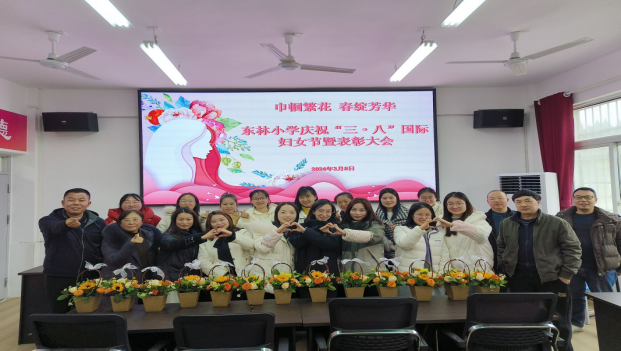 3月8日中午,游仙區東林小學學校一樓會議室舉行了以“巾幗繁花 春綻芳華”為主題的慶祝“三八 ”婦女節暨表彰大會,為全體女同胞們送去暖暖的情義和深深的祝福。