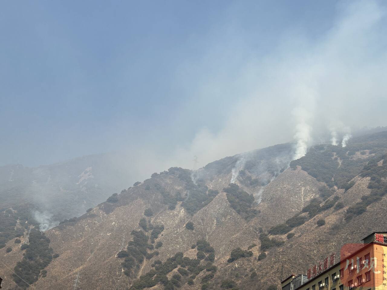 記者在雅江縣城看到,附近山頭存在部分著煙點,但無明火。