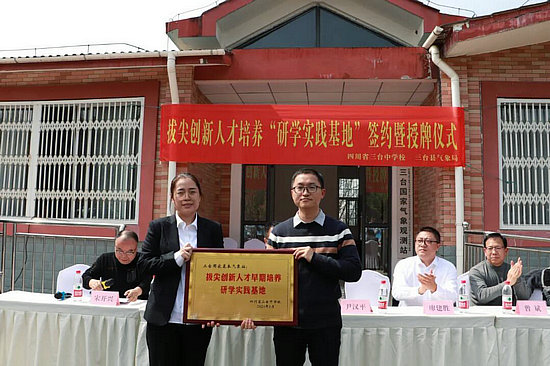 尹漢平作了《攜手奮進,共謀發(fā)展》的主題發(fā)言。他說,氣象事業(yè)是科技型、基礎性、先導性社會公益事業(yè),三臺縣氣象局以優(yōu)質的服務、精確的數據為三臺人民的生命安全、生產發(fā)展和生活品質保駕護航,也為我們的學生搭建了一個有利于樹立崇高理想、提高實踐能力的優(yōu)質平臺,本次簽約暨授牌儀式的舉行,不僅增強了三臺縣氣象局與三臺中學間的深情厚誼,也為拔尖創(chuàng)新人才早期培養(yǎng)探索了新的路徑。