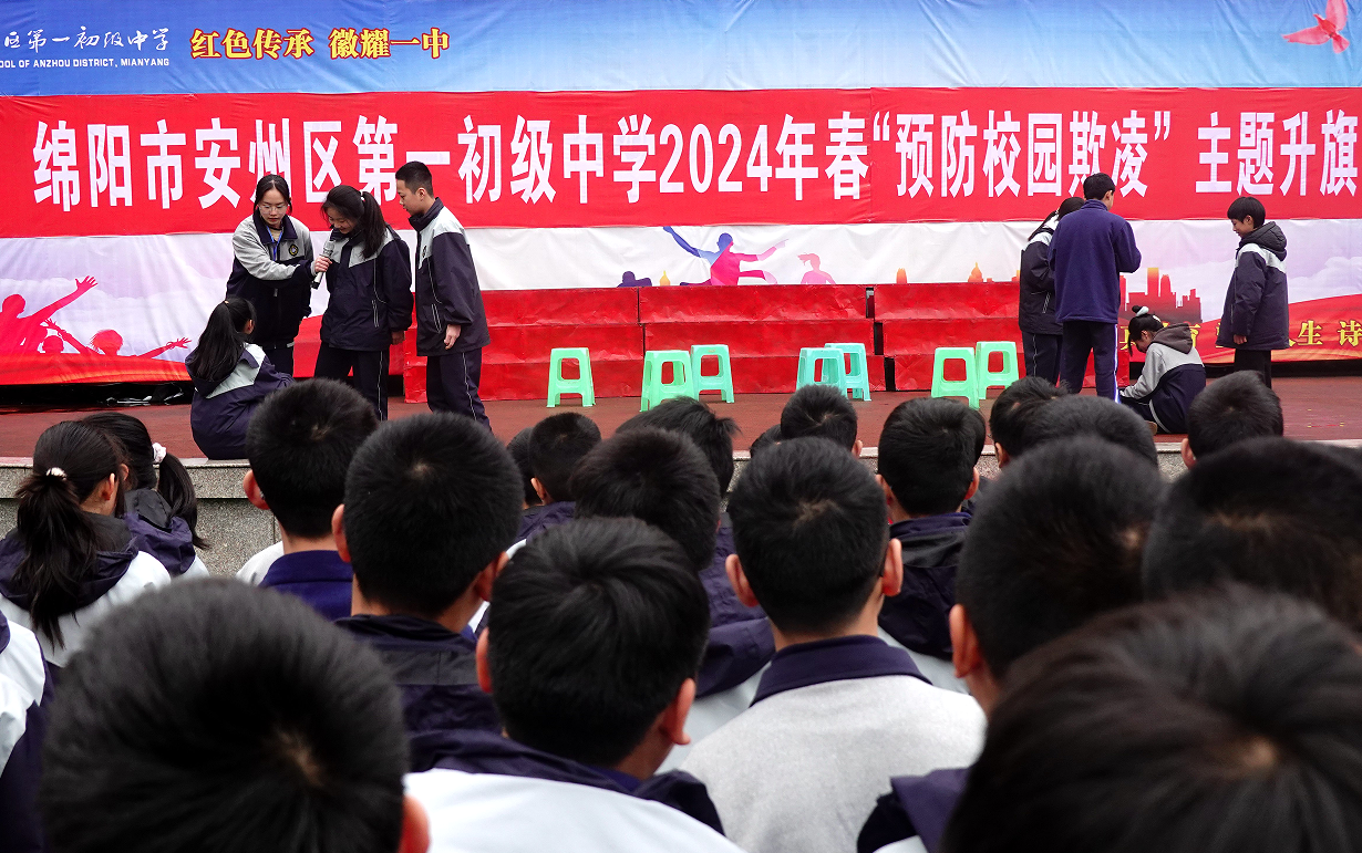 為了有效預防和遏制校園欺凌事件的發生,提高師生對校園欺凌的認識和應對能力,近日,安州區第一初級中學開展了以“建造友善和諧校園,拒絕校園欺凌”為主題的防校園欺凌宣傳周活動。
