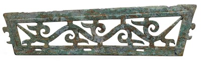 商代銅雕花鉞形刀。