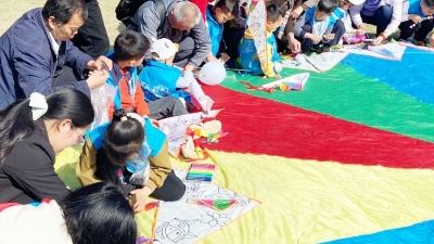 孩子們與家長(zhǎng)一起畫(huà)風(fēng)箏