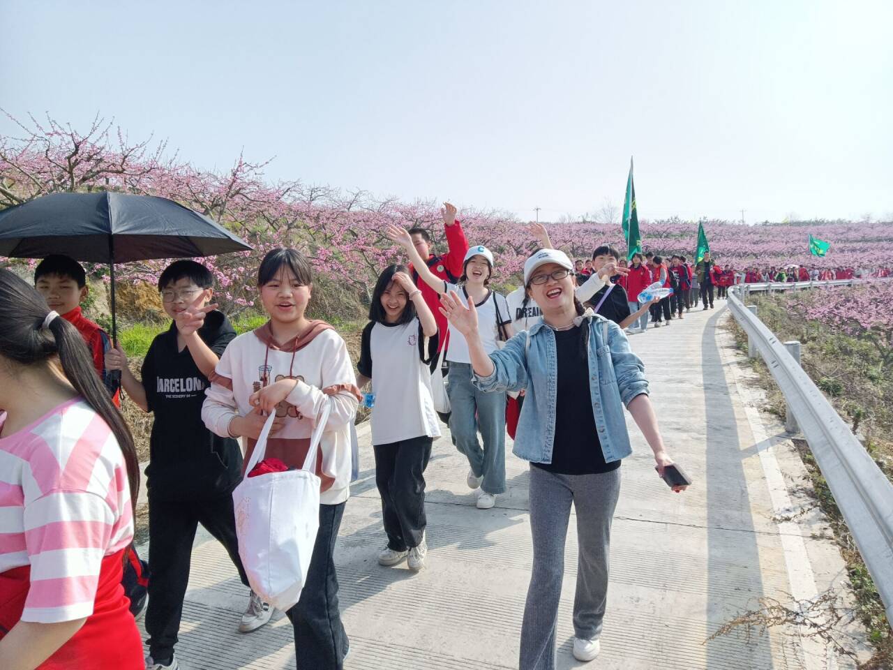 一路上,師生們行走在塔水七里村油菜花與桃花盛開的田野里,賞花,聽風,聞香,恰似去赴一場春天的盛會;領略家鄉美景,感悟家鄉祖國變化;撿拾垃圾,用行動踐行環保理念;相互幫助,相互鼓勵,彰顯班級凝聚力;師生互動,歡聲笑語,構成一幅幅和諧美景……