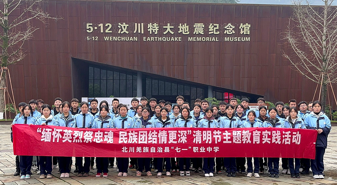 為了鑄牢中華民族共同體意識,充分挖掘中華民族傳統節日文化內涵,引導學生緬懷先輩,銘記抗震救災精神,培育和踐行社會主義核心價值觀,2024年4月3日,北川羌族自治縣“七一”職業中學2023級師生代表走進北川老縣城地震遺址和5·12汶川特大地震紀念館開展了以“緬懷英烈祭忠魂 民族團結情更深”為主題的清明節主題實踐活動。