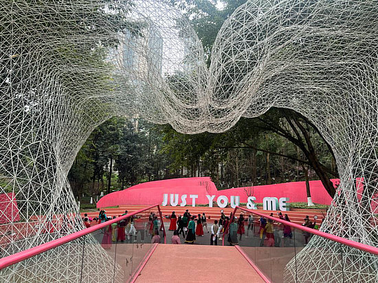 位于八橋鎮(zhèn)的愛情公園,近日在社交平臺上成為新的熱門“打卡點(diǎn)”。這里原本只是周邊小區(qū)的配套綠化區(qū),大渡口區(qū)城市管理局在2023年以“愛情”為主題對其進(jìn)行了改建。行走其間,各處粉色、紫色的景觀陳設(shè),被修剪成愛心形狀的樹木,“雙手捧心”的鵲橋等,時刻提醒著游客公園名字寄托的美麗意蘊(yùn)。