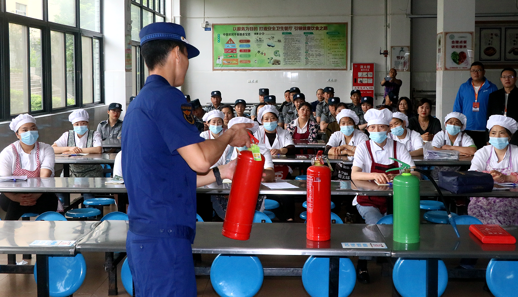 縣應急救援大隊的工作人員向參訓人員詳細介紹了食堂、小賣部等部位的消防安全知識,包括火災的成因、預防措施以及逃生自救的技巧等,還對不同類型的滅火器、滅火毯、消防栓的功能和使用方法進行了詳細講解,并通過實際操作演示,讓參訓人員更直觀地了解滅火器材的正確使用方法。