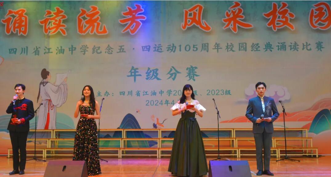 為了進一步弘揚和傳承中華民族燦爛文化,營造積極向上的校園文化氛圍,展現學子風采,4月17日晚,江油中學高2022級在學校體育館舉行了以“聆聽時代跫音,擘畫青春華章”為主題的紀念五四運動系列活動之“誦讀流芳,風采校園”的校園經典誦讀比賽年級分賽活動。