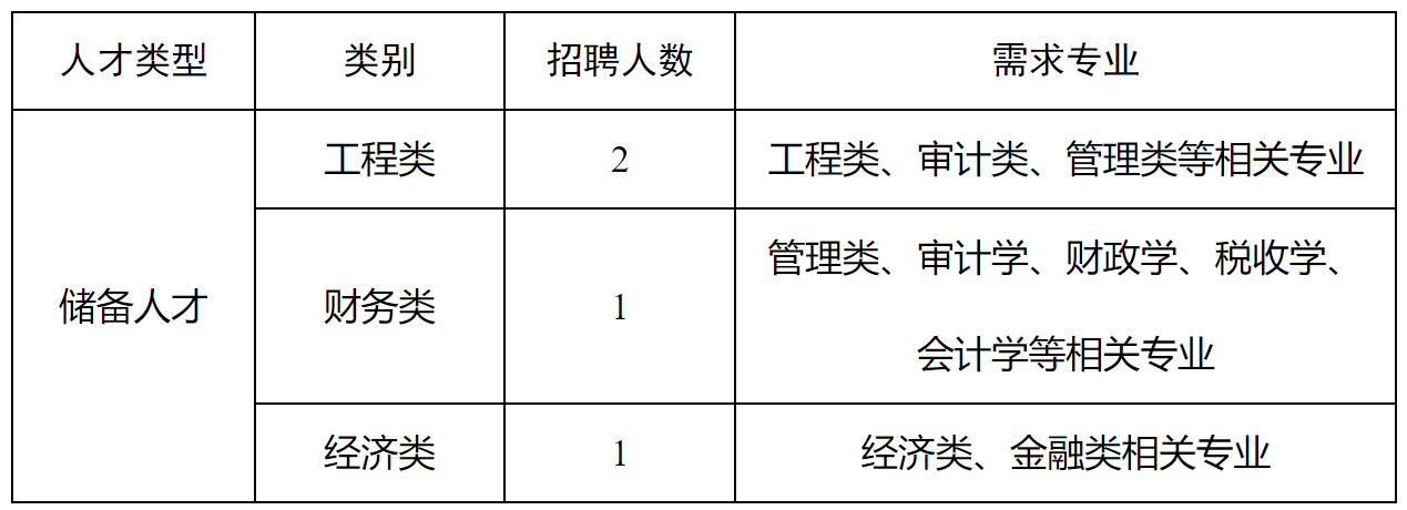 本次計劃引進各類儲備人才4名,具體如下: