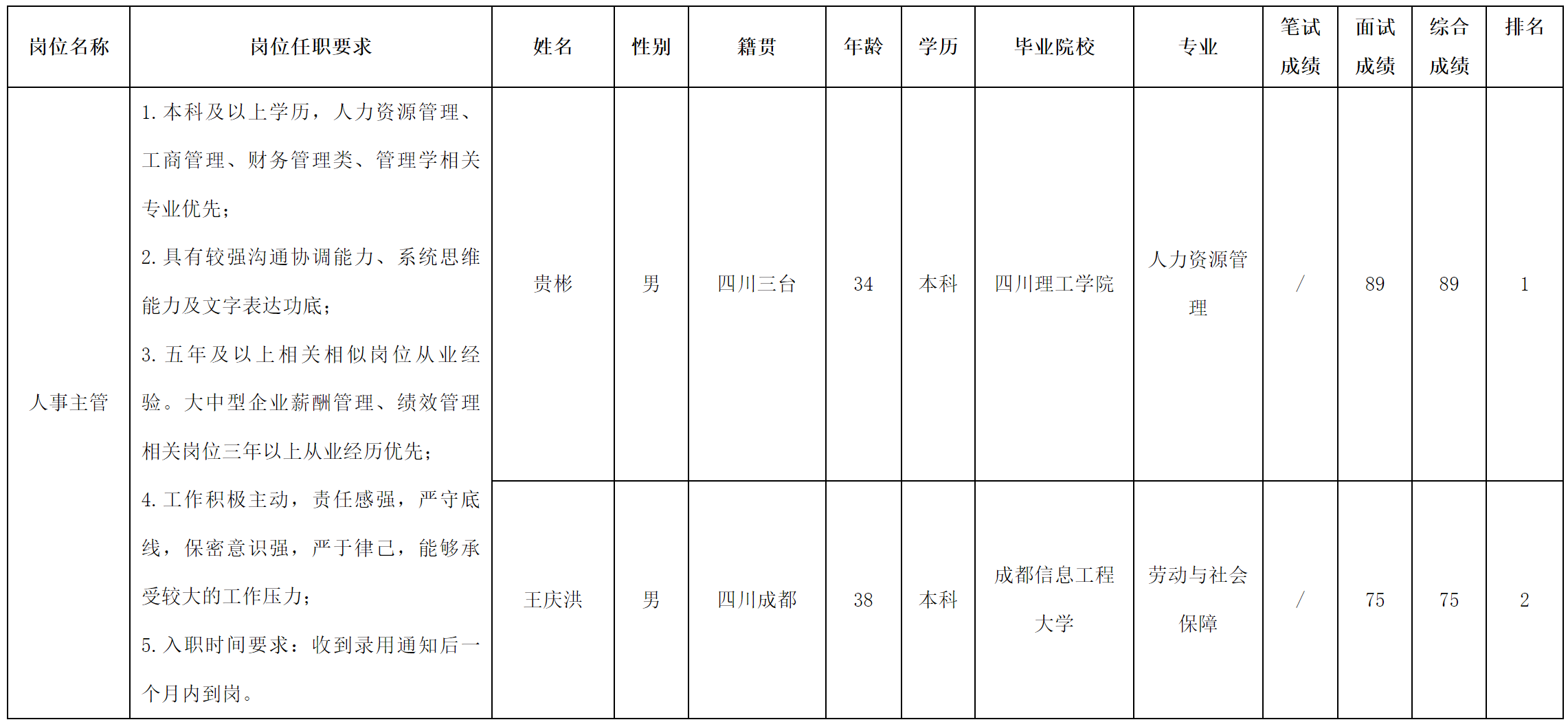 根據四川虹信軟件股份有限公司發布的招聘公告及招聘相關規定,經筆試、面試等程序,現將筆試(面試)成績予以公示。