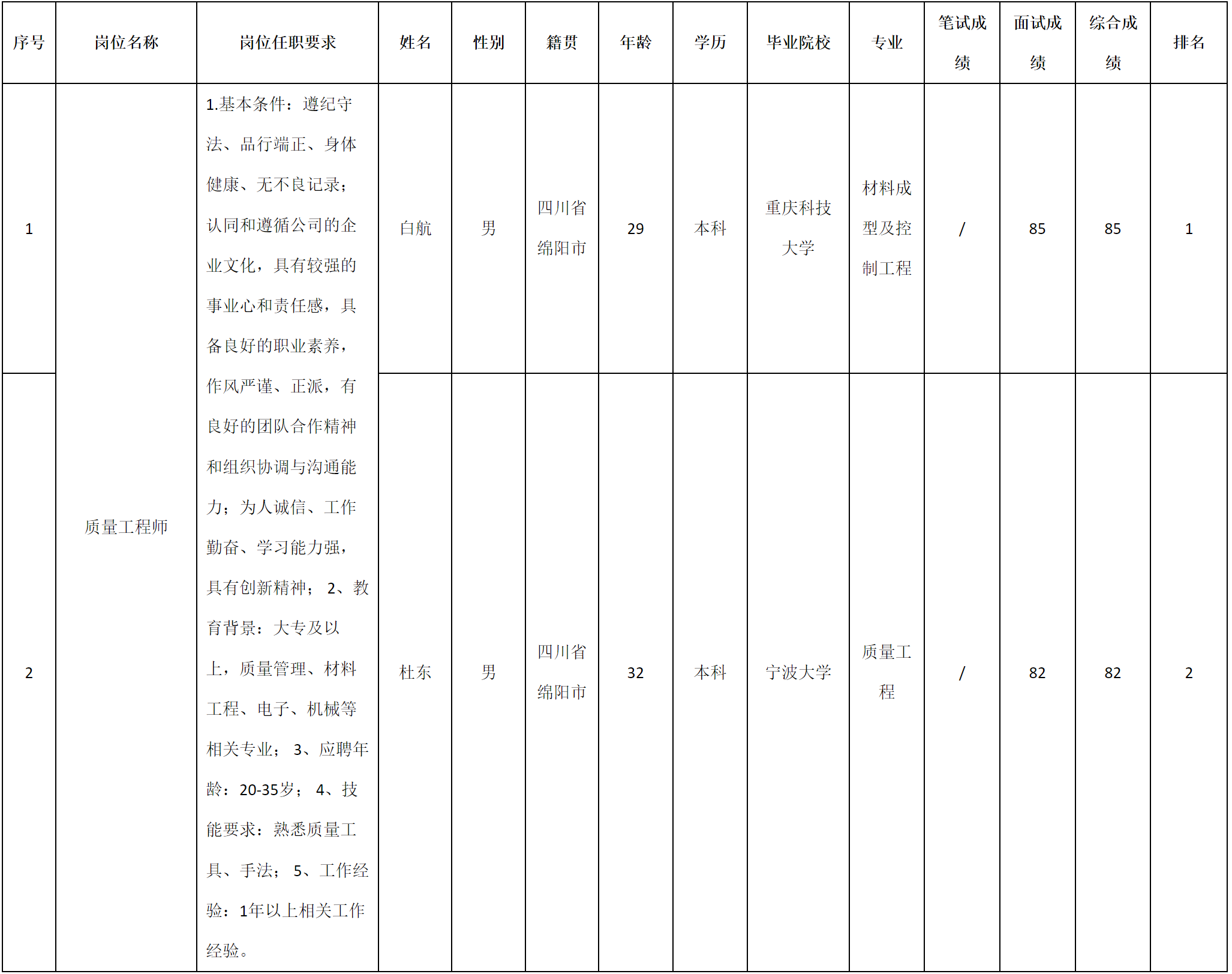 根據(jù)四川九華光子通信技術(shù)有限公司發(fā)布的招聘公告及招聘相關(guān)規(guī)定,經(jīng)筆試、面試等程序,現(xiàn)將筆試(面試)成績(jī)予以公示。
