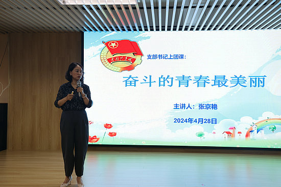 活動開始前,全體青年團員教師齊唱團歌《光榮啊!中國共青團》,青春激昂的歌聲拉開了活動的序幕。隨后,黨支部書記張京艷為全體團員上了一堂以《奮斗的青春最美麗》為主題的團課,她要求全體團員教師要堅定理想信念,將個人的成長發展與國家的前途命運緊密相連,正值青春奮斗當時!
