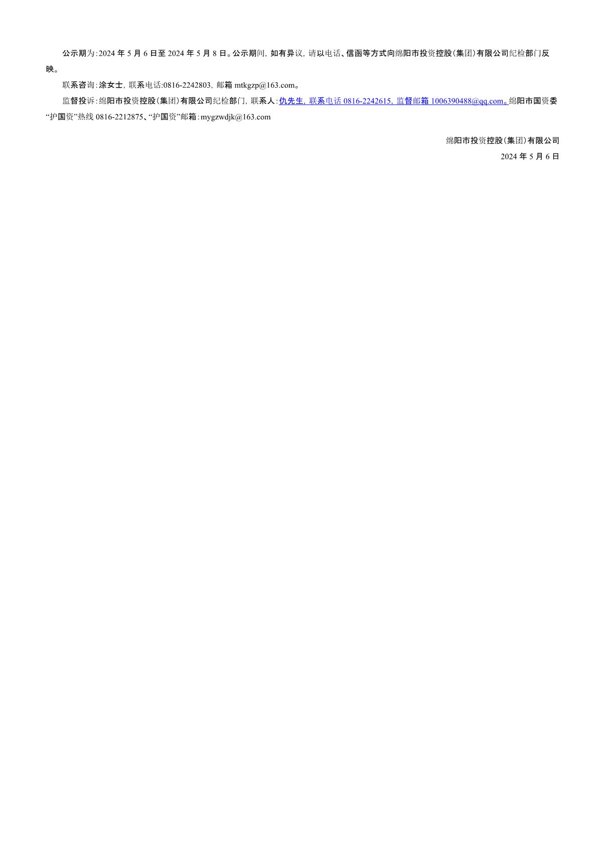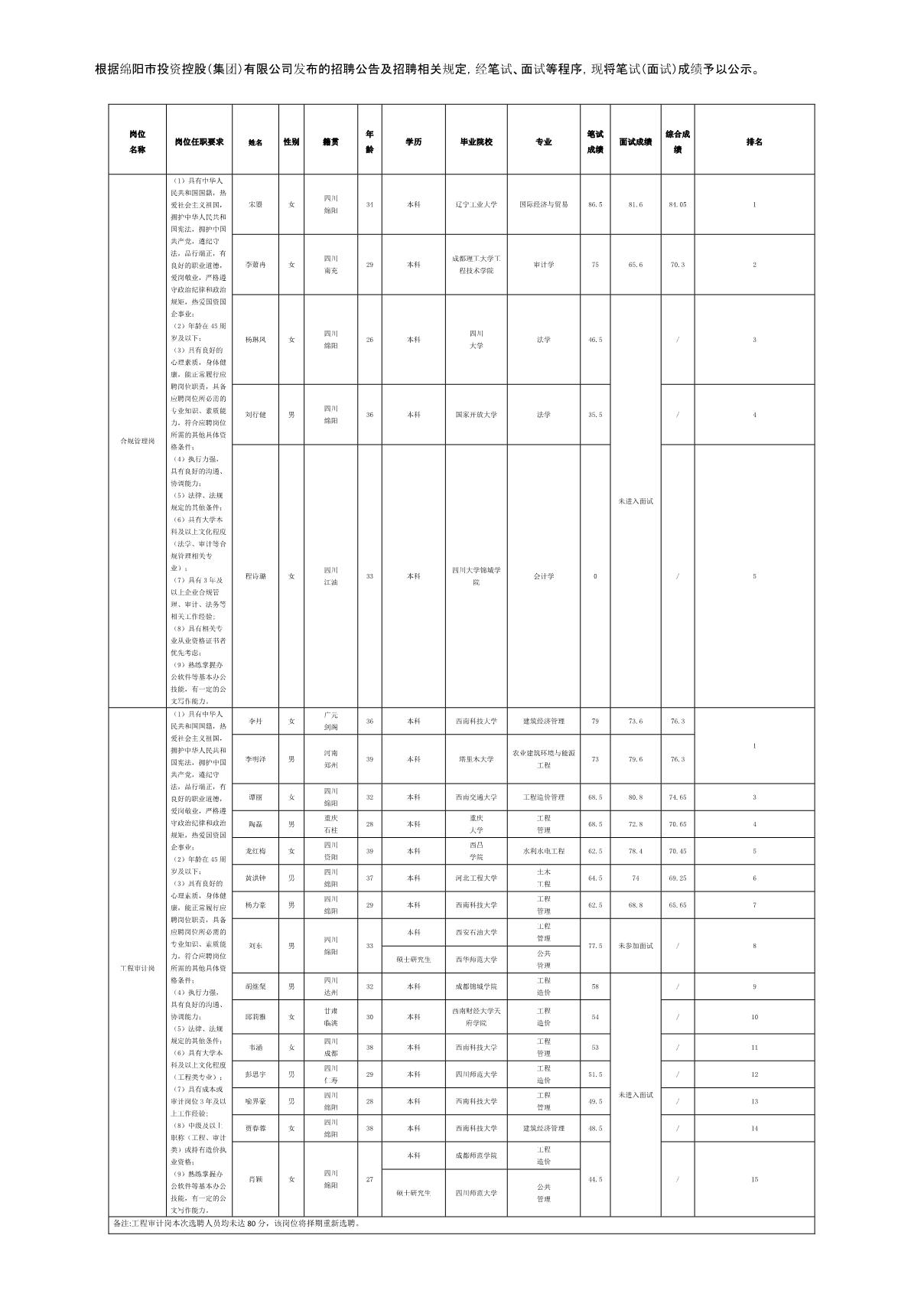 綿陽市投資控股(集團)有限公司關于招聘工程審計等崗位測試成績的公示