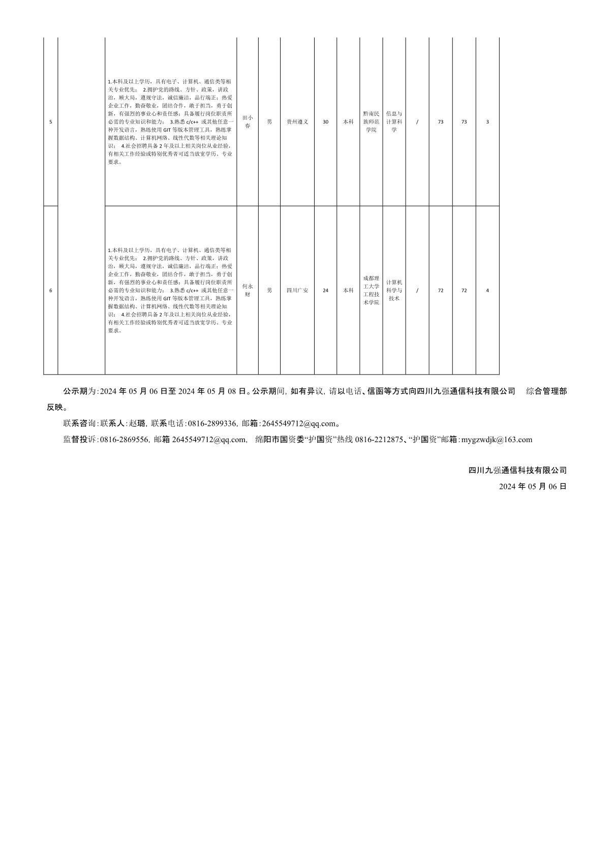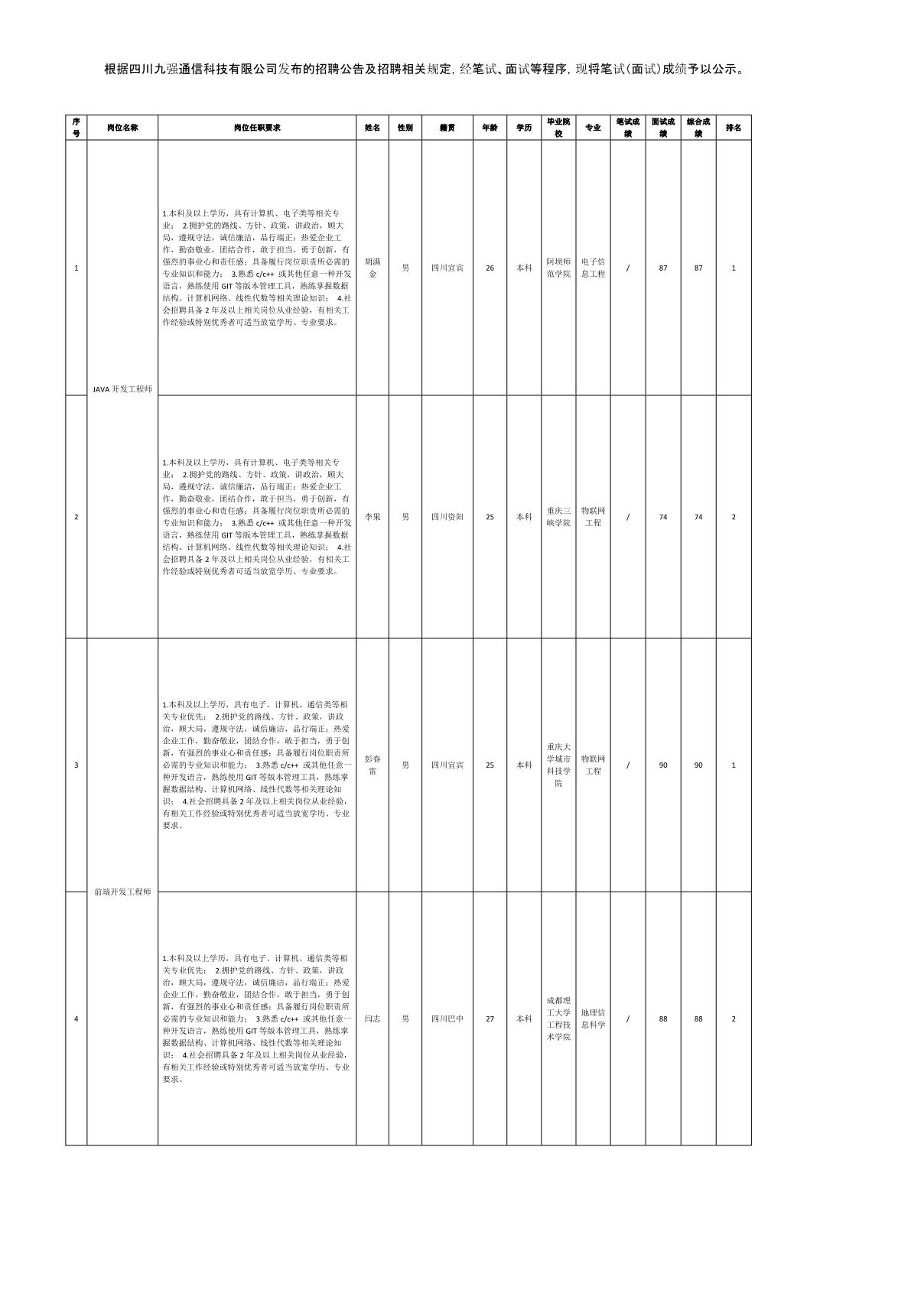 四川九強通信科技有限公司關(guān)于招聘前端開發(fā)工程師等崗位測試成績的公示