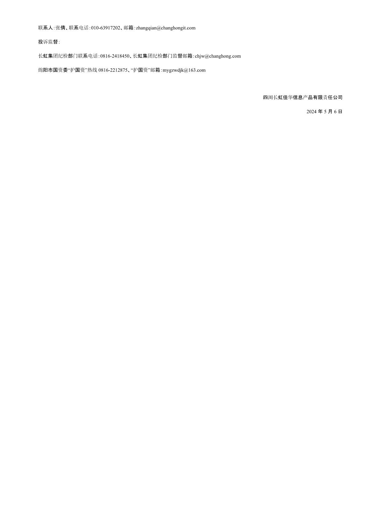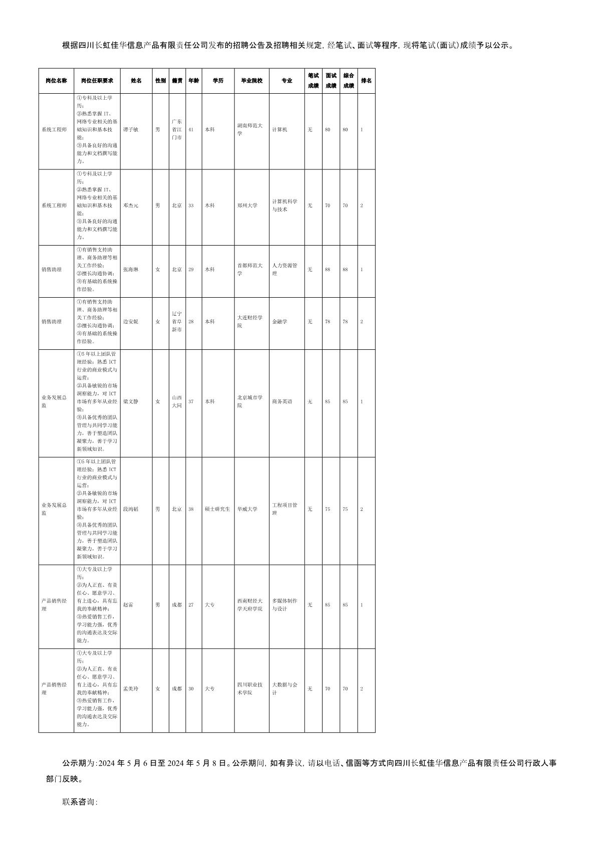 四川長虹佳華信息產品有限責任公司關于招聘系統工程師等崗位測試成績的公示