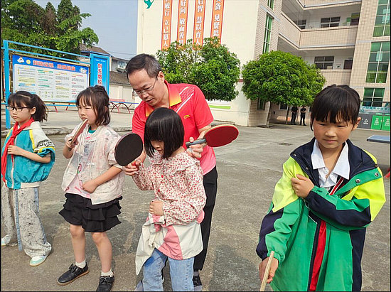 年5月9日,該校開展了“銀球飛旋 快樂童年”乒乓球特色工作活動。活動中,該校黨支部書記、校長彭真致歡迎詞。邀請了安州區業余體校黨支部書記、校長,國家級社會體育指導員,安州區乒乓球資深教練劉英,安州區乒乓球比賽團體冠軍得主,安州區優秀乒乓球運動員張義兵、賀煒、王翠香、邱弟軍,對全校師生進行了一堂生動而專業的乒乓球教學課。教練員們針對學校乒乓球教學需要,分別到各個班級,重點講解了乒乓球運動的意義、乒乓球教學基礎以及乒乓球比賽規則,手把手教學生打球,指導學生基本動作,和孩子們交流乒乓球運動的心理體驗,受到孩子們的熱烈歡迎。