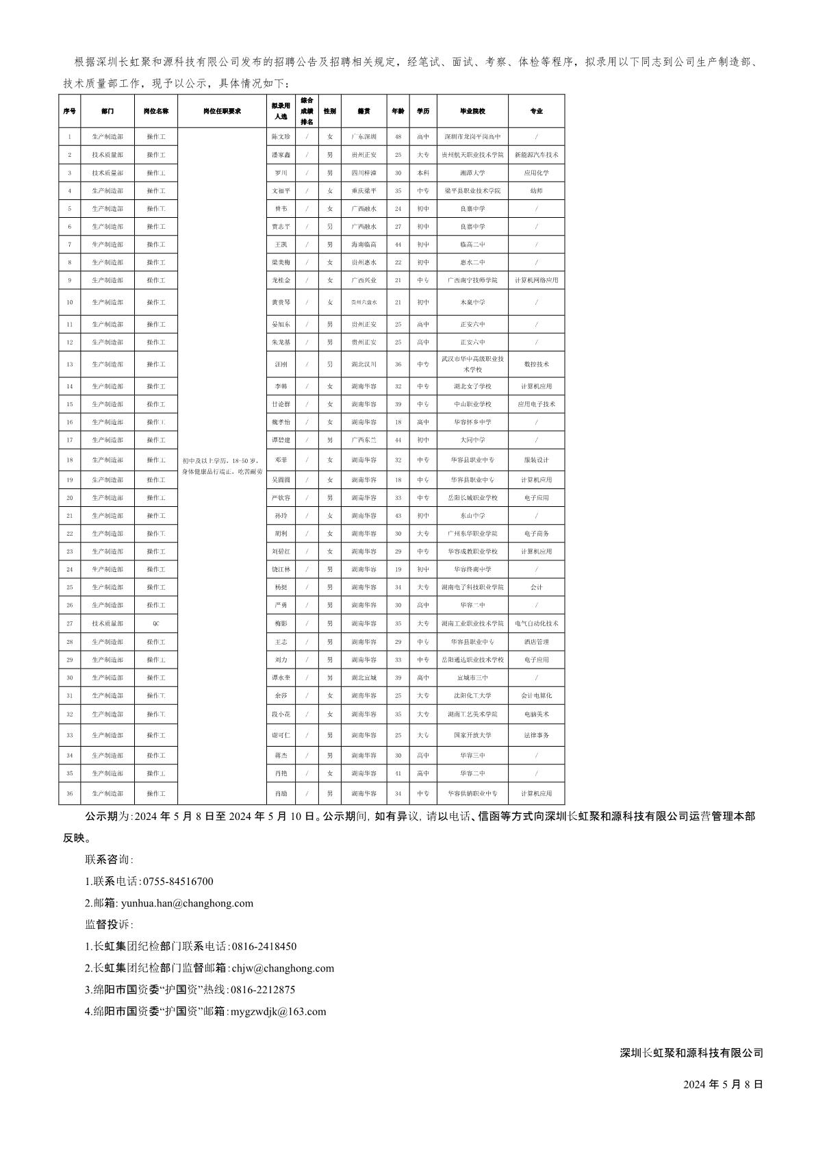 四川華豐科技股份有限公司關于招聘質(zhì)量工程師等崗位擬錄用人員公示