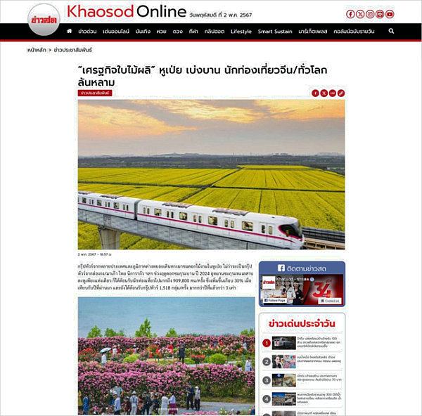 泰國媒體Khaosod Online發(fā)文介紹,春賞櫻花已成為湖北的名片。為順應(yīng)春季旅游市場特點(diǎn)和不同群體的消費(fèi)需求,湖北推出“跟著花期去旅游”“跟著演唱會去旅游”等主題產(chǎn)品,舉辦“相約春天賞櫻花”暨湖北最美賞花季活動,發(fā)布2024賞花地圖和200多個賞花打卡點(diǎn),掀起全省賞花熱潮,武漢市入選中國十大熱門賞花游目的地。