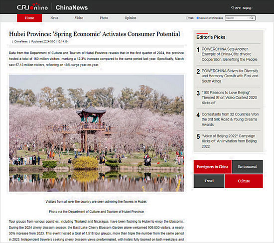國際在線ChinaNews英文網(wǎng)發(fā)文稱贊湖北“春日經(jīng)濟(jì)”激活消費(fèi)潛力