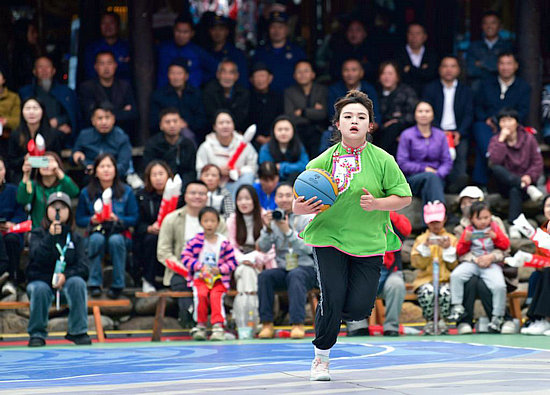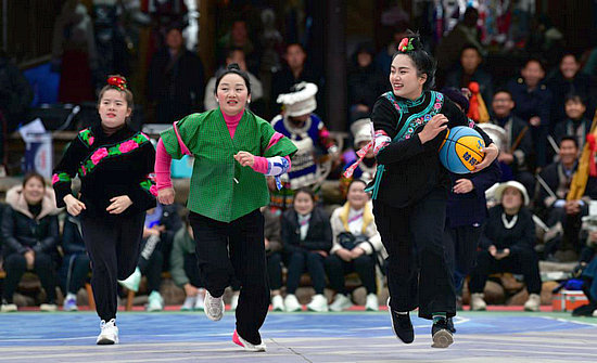 新華社貴陽5月10日電(記者鄭明鴻)今年春節(jié)以來,到貴州省雷山縣西江千戶苗寨游玩的游客,除了領(lǐng)略苗寨風(fēng)光,還有機(jī)會現(xiàn)場觀看一場規(guī)則新穎、樂趣滿滿的籃球賽:女球員身著具有民族特色的服裝,抱著球全場奔襲,或自己進(jìn)攻,或?qū)⑶騻鹘o機(jī)會更好的隊友……