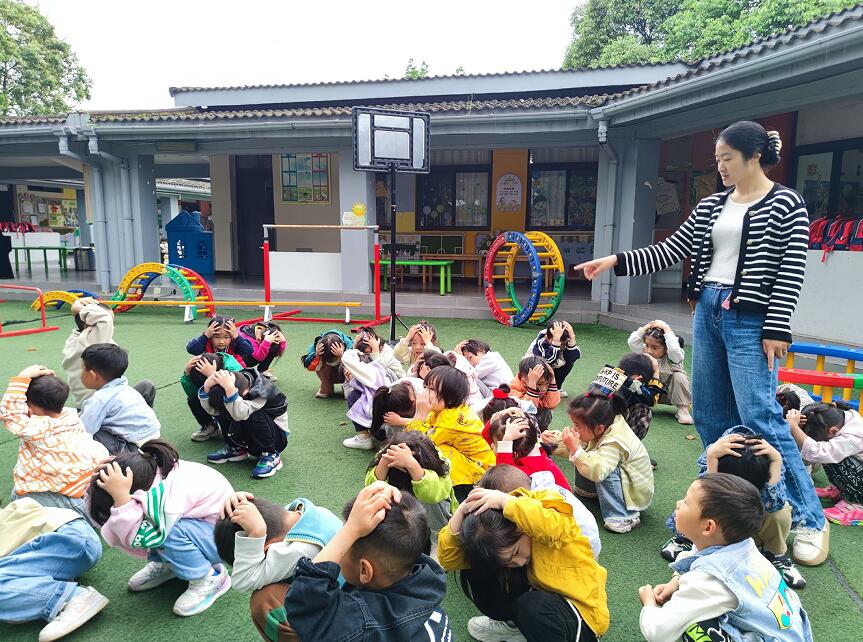 隨著警報聲響起,老師立即組織幼兒排隊(duì)雙手抱頭、彎腰低身、沿著預(yù)定路線,快速有序地撤離到操場,完成安全撤離,并清點(diǎn)人數(shù)。整個演練過程既緊張又有條不紊,沒有疏漏任何一名小朋友,使得演練達(dá)到了預(yù)期效果。