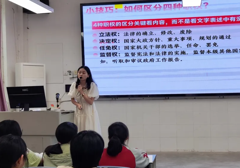 綿陽市實驗中學青年教師江語薇執教初中道德與法治八下《國家權力機關》新課教學。課堂上,江老師將“立足核心素養、聚焦課堂實踐”這一理念貫穿始終。她以2024年“兩會”引入新課,通過“議題式教學”展開課堂。通過對時政材料——2024年全國人民代表大會的分析,讓學生明確權力機關的性質、構成、地位及職權。整個教學過程充分發揮了教師的主導作用,通過豐富的材料,生動的視頻,調動了學生的主動性和積極性。巧妙的設計得到在場聽課老師的一致好評。