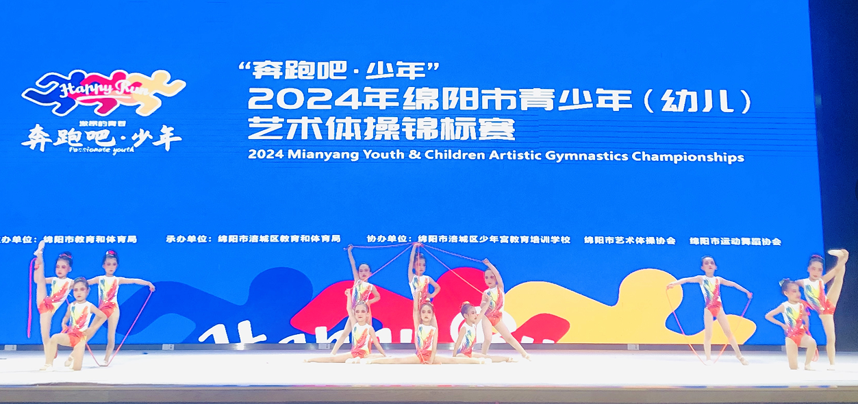 5月22日,“奔跑吧·少年”2024年綿陽市青少年(幼兒)藝術體操錦標賽在綿陽市少年宮科藝劇場舉行。梓潼縣文昌第一幼兒園參加幼兒甲組集體自編組的比賽,選擇的藝術體操器械為體操繩。