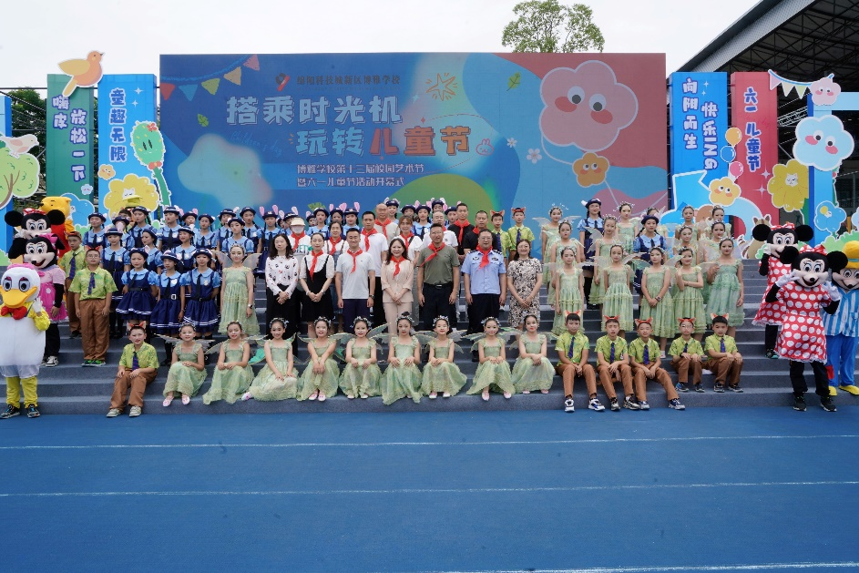 “六一”兒童節來臨之際,為了讓孩子們在豐富多彩的活動中欣賞美、表達美、創造美、傳播美,增強民族認同感,度過一個難忘的、意義非凡的兒童節,綿陽科技城新區博雅學校舉辦了以“搭乘時光機,玩轉兒童節”為主題的第十三屆校園藝術節暨“六一”兒童節慶祝活動。科技城新區黨工委委員楊靜霞,區黨群工作部、區財政局、區公共服務局、區婦聯、區工會、元通派出所 、創業園街道、新投集團及各社區領導參加活動。
