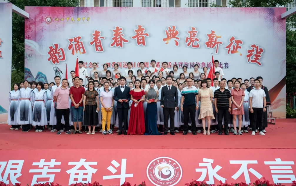 為了進一步加強學校精神文明建設,弘揚“詩化人生 節礪天下”的校風,積極踐行學校大閱讀活動,5月31日下午,江油市太白中學在學校操場舉行了以“韻‘誦’青春音 ‘典’亮新征程”為主題的2024年春校園經典誦讀比賽活動。