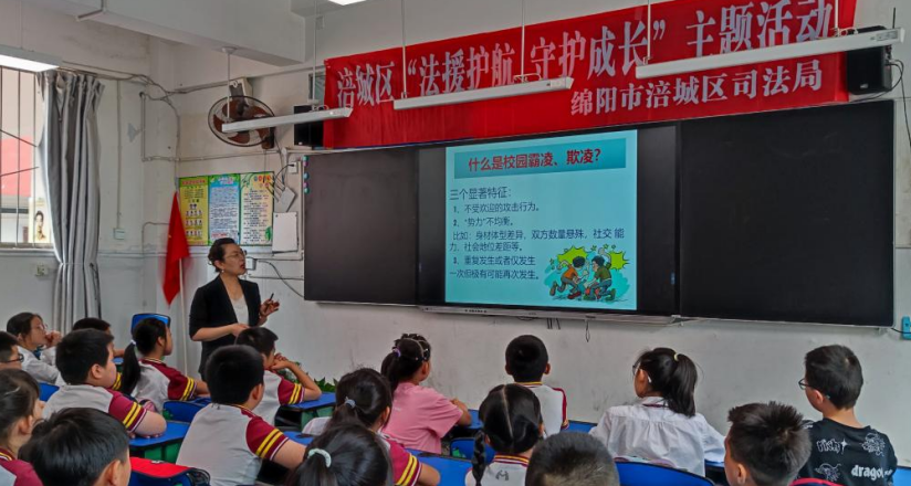 在“六一”兒童節到來之際,涪城區司法局聯合綿陽市一元愛心協會、四川蜀仁律師事務所在綿陽市城郊小學開展了以“法援護航,守護成長”為主題的法治課活動。