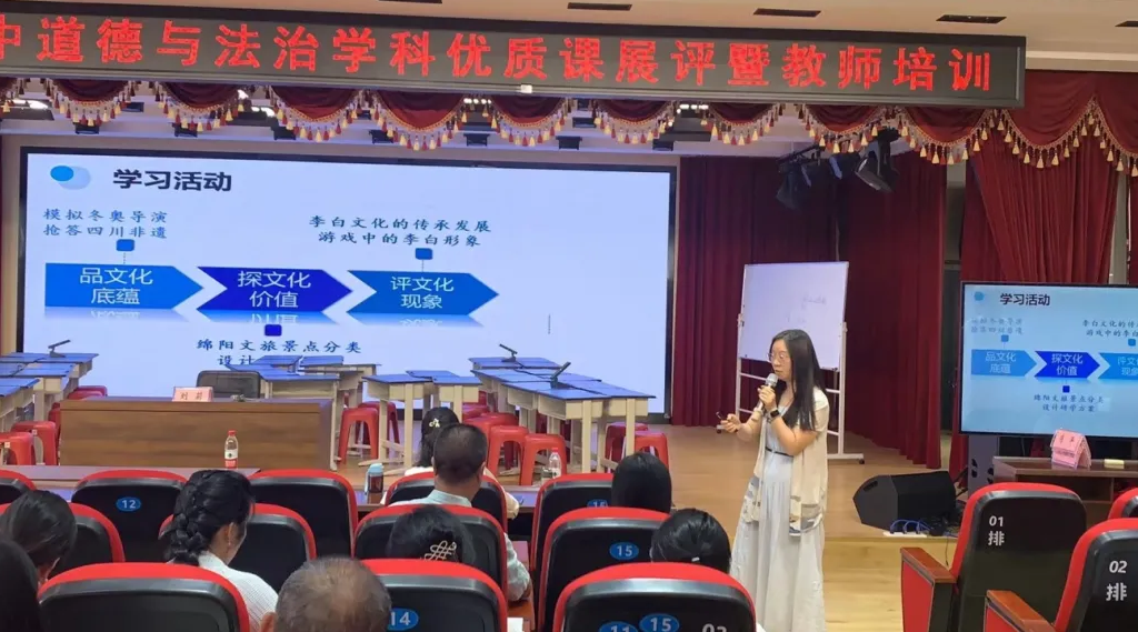 近日,游仙區2024年初中道德與法治學科優質課展評暨教師培訓在富樂中學二中校區召開,培訓活動由富樂中學優秀教師王敏主持。