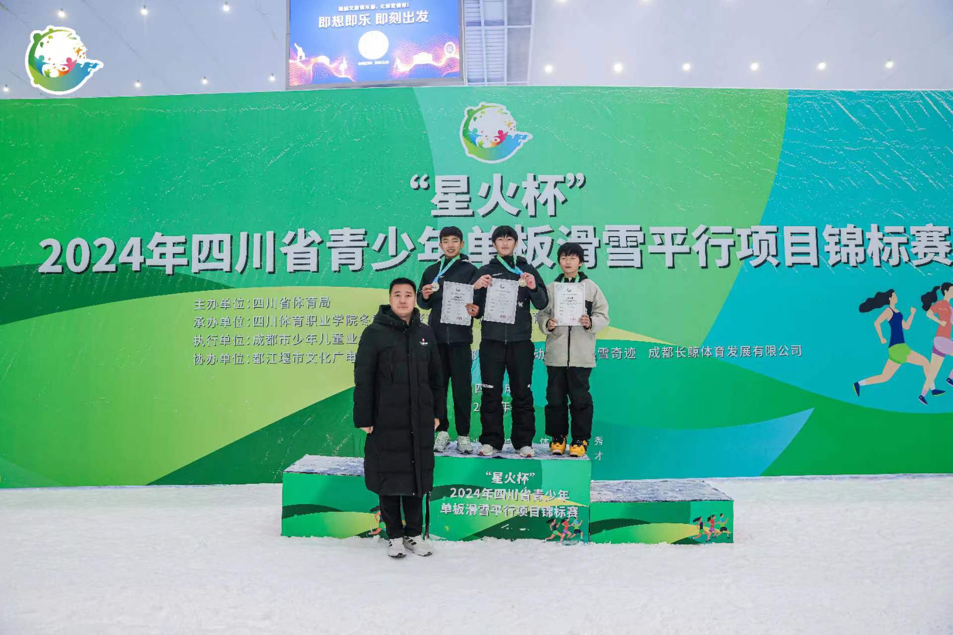 開元中學代表綿陽市組隊參加本次比賽。比賽既緊張激烈又和諧精彩,運動員們如飛鴻回旋,展現出堅韌不拔的拼搏精神,用高超的技藝贏得現場觀眾陣陣喝彩。開中初三學生楊武勝俊,在男子甲組單板滑雪平行大回轉、平行回轉兩個項目的角逐中,獨攬兩枚金牌,成為本次比賽該組別“雙冠王”。