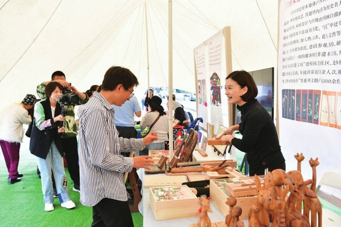 以五谷雜糧為材料制作的糧藝畫,集非遺傳承、農(nóng)耕文明展示、農(nóng)耕文化體驗(yàn)為一體;用霧山石開(kāi)鑿的硯臺(tái),蘊(yùn)藏葫蘆、荷花、江油標(biāo)志性建筑等構(gòu)思;色澤飽滿、圖案豐富的三臺(tái)布藝,吸引了不少小朋友關(guān)注……各種非遺技藝,演繹著傳統(tǒng)文化的絢麗多姿,還有“向新而行”的巧妙思路。