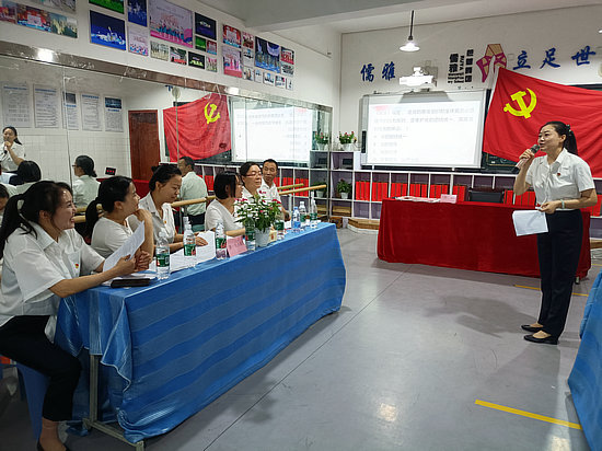 活動中,《堅守》《追光》《共同的名字》三個勵志微視頻將大家引入紅色意境,喚醒紅色記憶。黨支部書記李剛同志帶領全體黨員教師重溫入黨誓詞、重憶入黨初心,在黨旗下接受心靈的凈化和洗禮。鏗鏘有力的宣誓匯聚了“聽黨話,跟黨走,感黨恩”的磅礴力量。