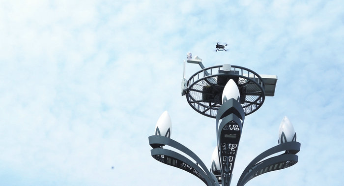 近日,不少綿陽市民發現,在綿陽科技城新區(以下簡稱“新區”)園興西街的路燈桿上建起了一座“空中機場”,不時飛出無人機在城市上空盤旋。