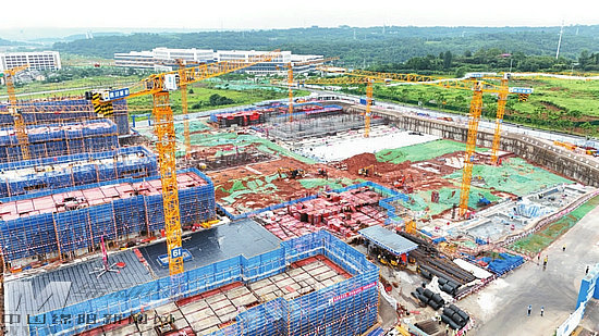 9時左右,塔吊林立的建設現場便“熱”了起來——各類工程車來回穿梭,不停地運送著物料,400余名建設者們各司其職,緊張忙碌地進行著施工作業,各項工序有條不紊推進。
