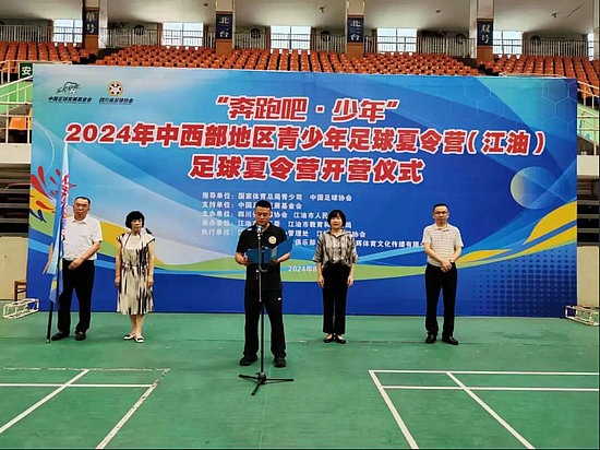 據悉,此次足球夏令營是一個面向中西部地區青少年的公益性足球夏令營活動,江油市有9所小學和江油市足協梯隊共有100余名小球員參加,涵蓋了足球基本技戰術訓練、足球比賽等內容。在開營儀式上,四川省足協主席廖永東向江油市足球協會授夏令營營旗并宣布開營。