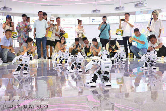 在機器人創新館、綿陽樂聚機器人技術有限公司和五八機器人公司內,與四足機器“警犬”親密互動,和人形機器人“夸父”面對面交流……