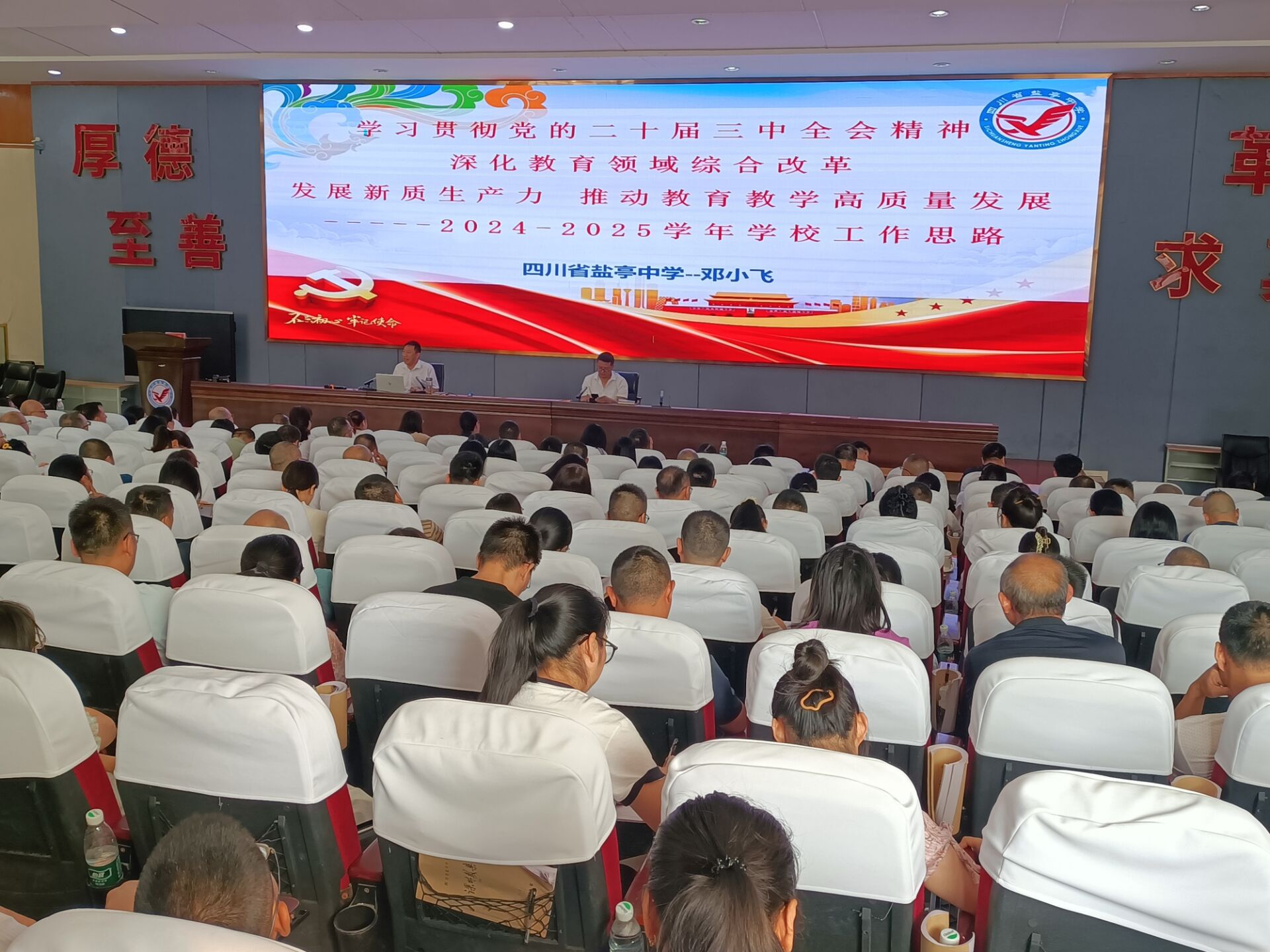 8月28日,鹽亭中學在校本部學術報告廳召開了以“早謀劃勠力同心,譜新篇踔厲奮發”為主題的2024年秋季開學工作會。包括文同創新實驗校在內的全體教職工參加了會議。會議由學校黨委書記張領先主持,校長鄧小飛作了專題發言,學校其他校級行政領導也先后就自己分管的工作進行了安排與部署。