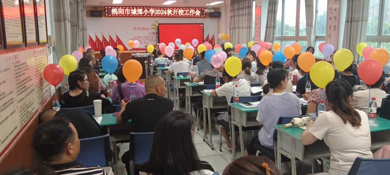8月30日上午九時,綿陽市城郊小學召開了以“秉承仁愛,遇見美好,享受幸福”為主題的2024秋季開學工作會,全體教師參加會議。 副校長董紅梅主持會議。