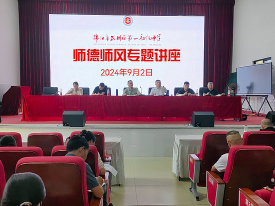 綿陽新聞網訊 為了進一步加強教師隊伍師德師風建設,營造風清氣正的教育環境。9月2日,安州區第一初級中學舉辦了以“不忘初心 ,堅守師德”為主題的2024年秋季學期師德師風專題講座。本次講座由該校黨總支書記鄧開明同志主講,全校教職員工齊聚一堂,共同聆聽了這場深刻而富有啟發性的講座。