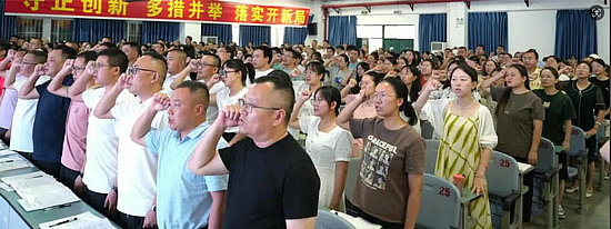 最后,全體教職工舉行了莊嚴(yán)的師德師風(fēng)宣誓儀式。教師們緊握右拳,鏗鏘有力地許下承諾。這一莊嚴(yán)的宣誓,不僅展現(xiàn)了蘆溪中學(xué)教師隊(duì)伍的良好風(fēng)貌,更為新學(xué)年的教育教學(xué)工作奠定了堅(jiān)實(shí)的基礎(chǔ)。