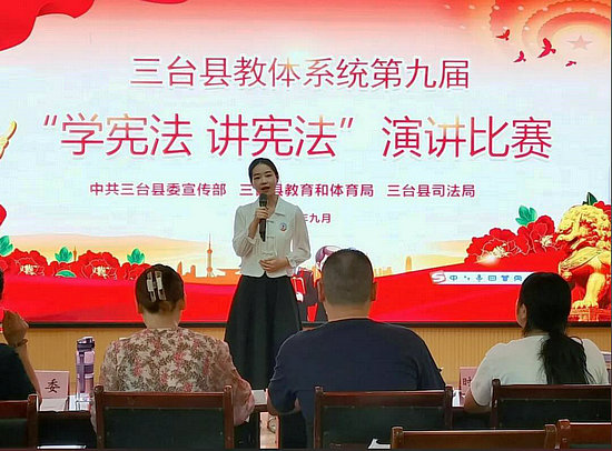 綿陽新聞網訊 9月6日至7日,在三臺縣教體系統第九屆“學憲法 講憲法”暨法治素養提升成效展演活動決賽中,三臺中學2023級22班王晴榮獲法治素養競賽冠軍,2023級22班唐巧榮獲法治素養競賽亞軍,2023級24班來馨怡榮獲法治素養競賽季軍!2023級英語教師彭玥榮獲法治演講競賽教師組一等獎。三臺中學榮獲優秀組織獎!