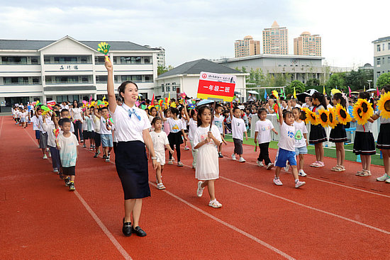 六年級學生代表任致遠、一年級新生代表藍亦清分享了他們對新學期的憧憬和期望。新教師團隊為大家送上了吉他彈唱《最后一頁》、歌曲《在“七一”的校園里挖呀挖呀挖》、武術《五步操》等節目,新教師的風采讓節日氣氛滿滿,生動詮釋了“努力成為有品位的人”的教育理念。